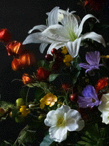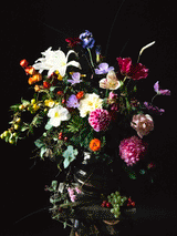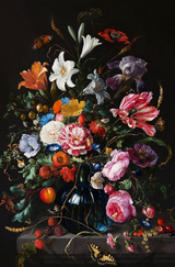 Dit boeket is tot stand gekomen door de inspiratie bij het Maurits huis van het mooie schilderij van Jan Davidsz de Heem. Er zitten mooie takken in met appeltjes frambozen en bessen. De hoogte van het boeket is 80cm.
